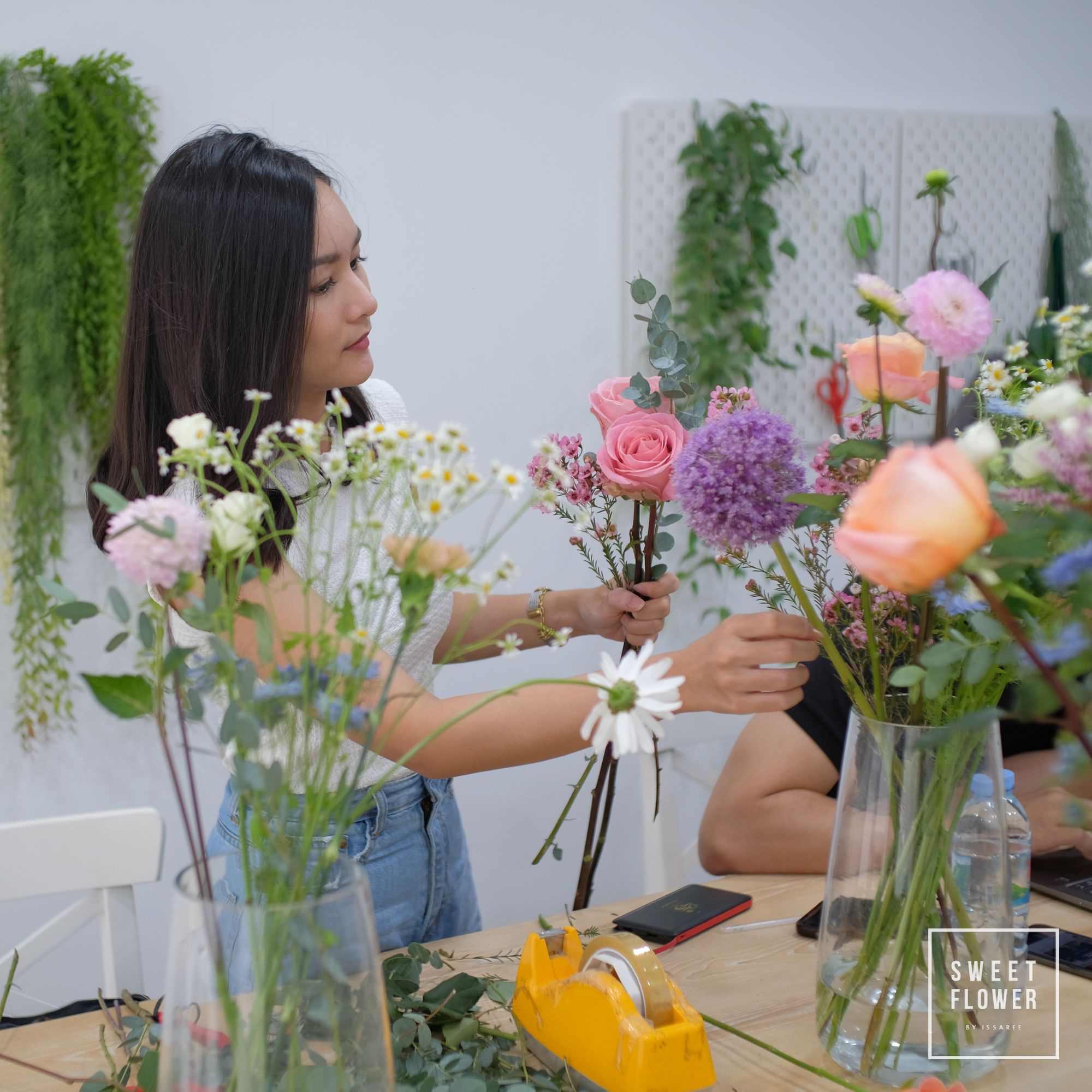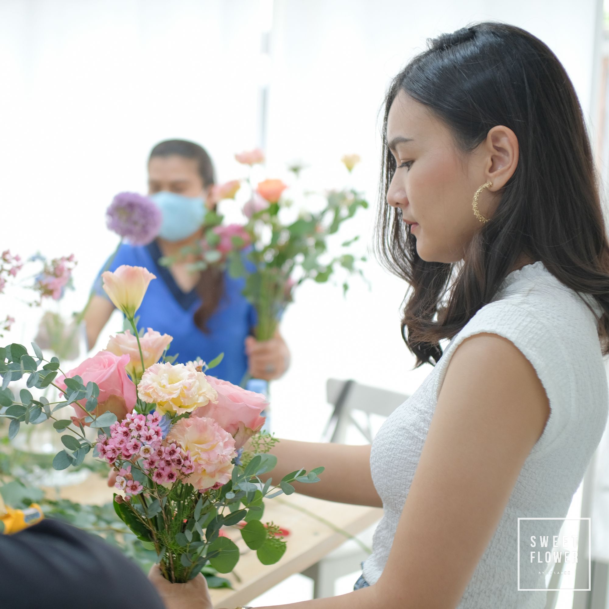 เรียนจัดช่อดอกไม้เป็นกลุ่ม