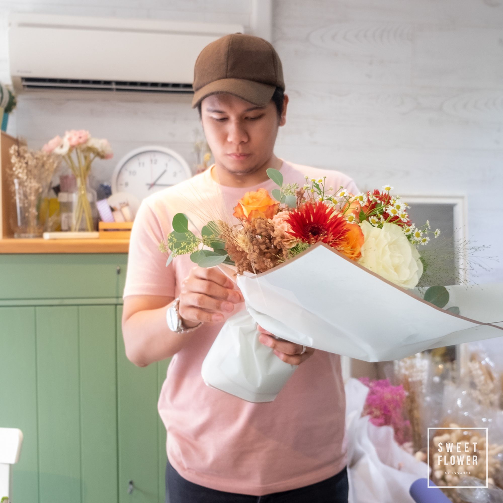 • วิธีการจัดดอกไม้ การห่อช่อและลงมือปฏิบัติ