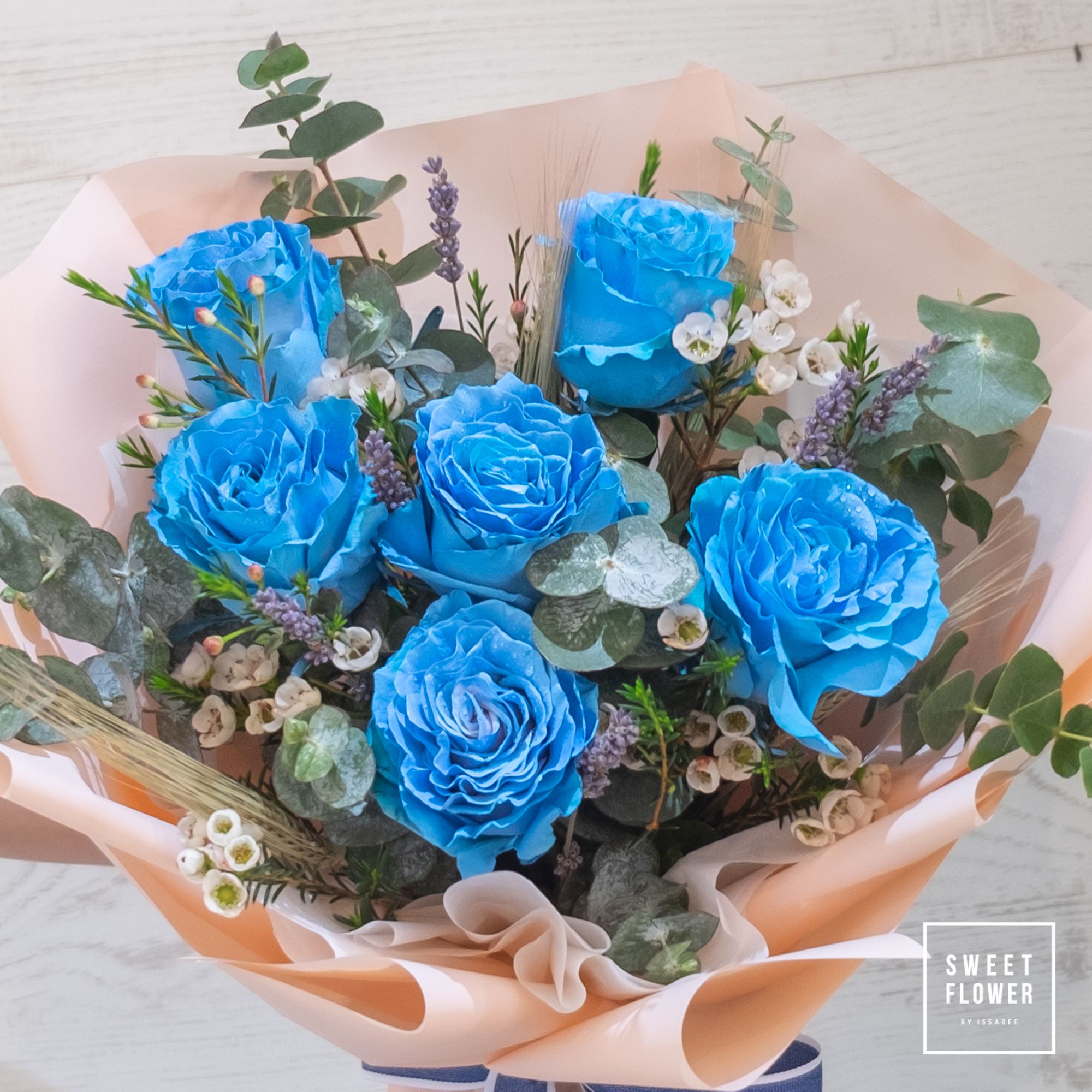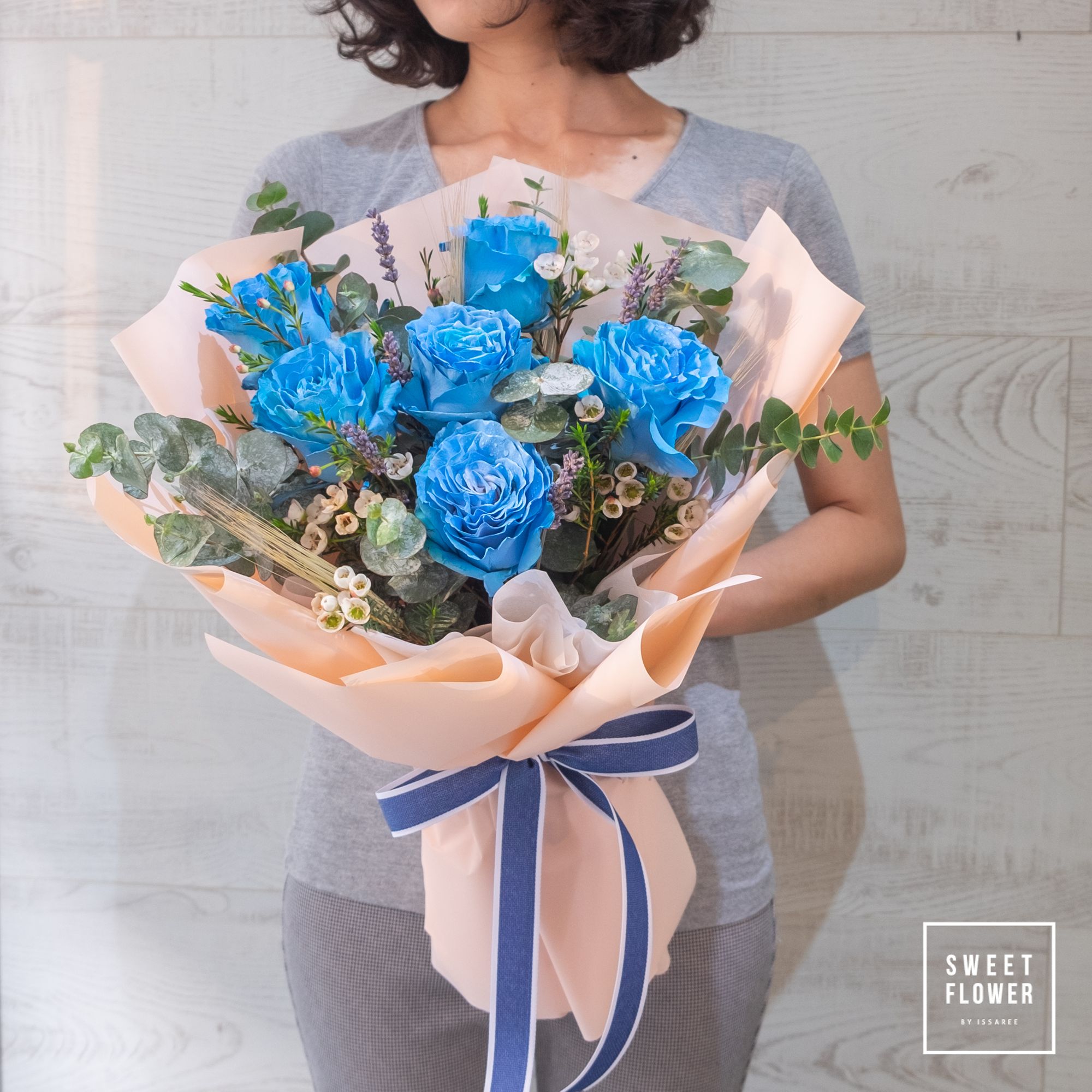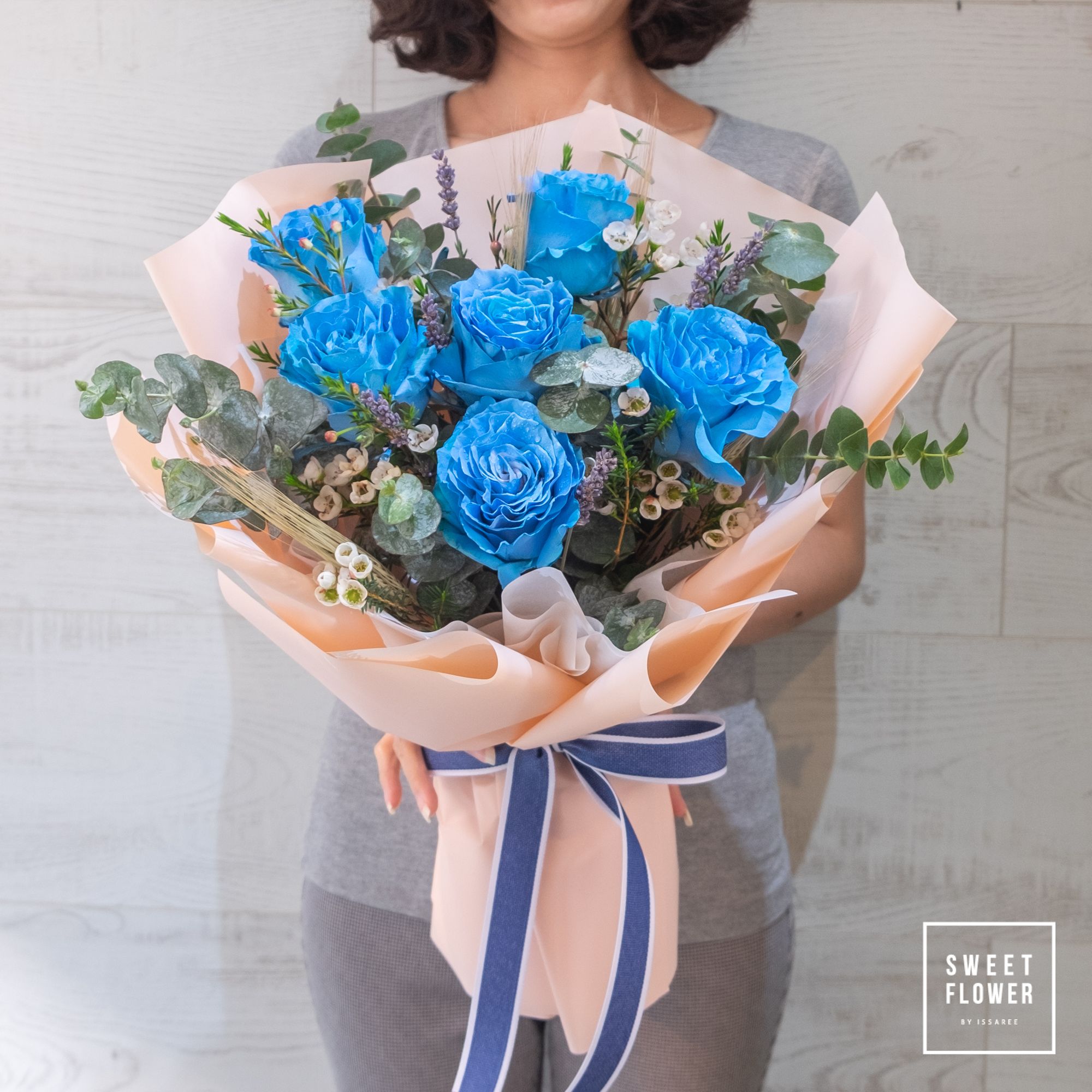 ช่อกุหลาบสีฟ้า 6 ดอก