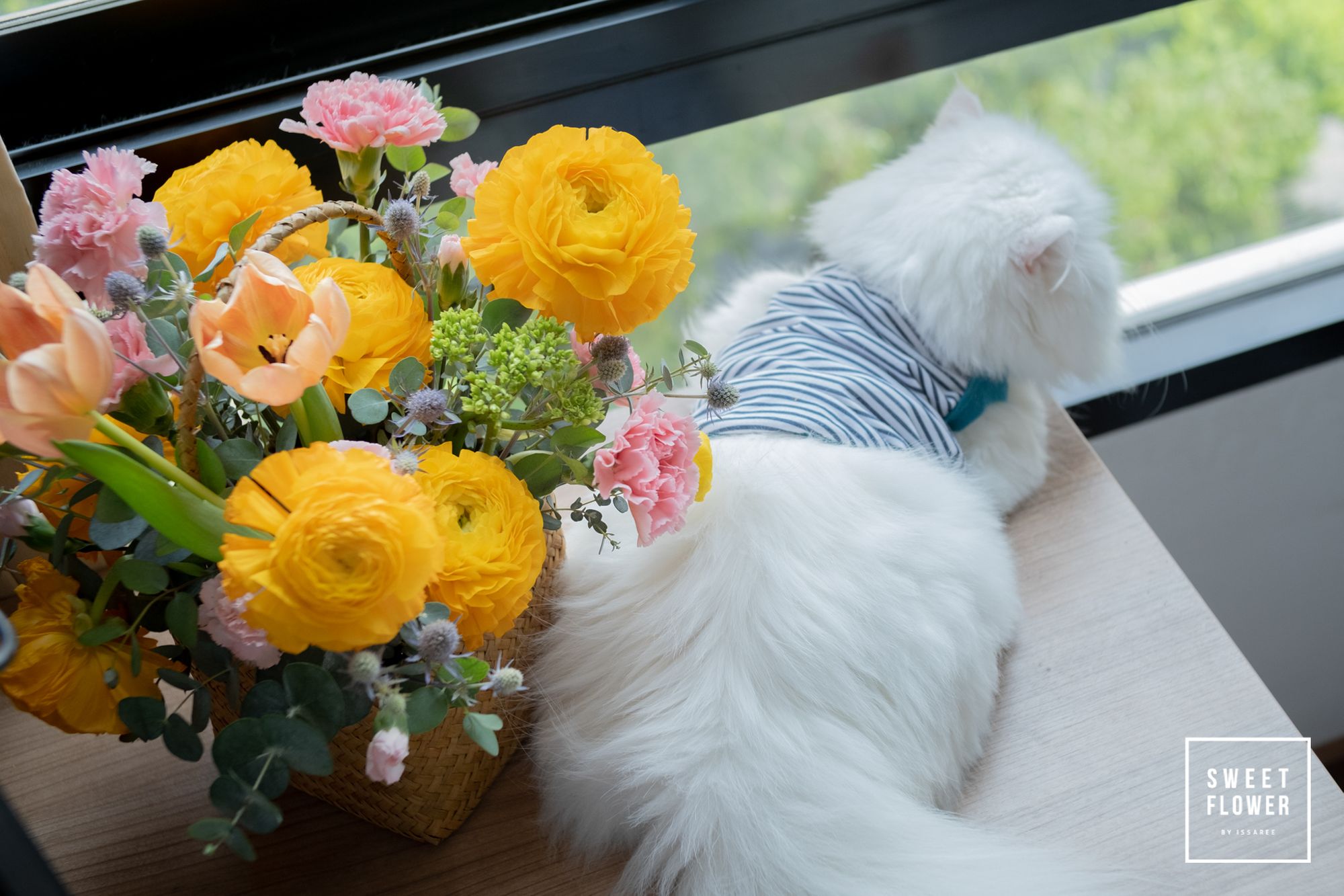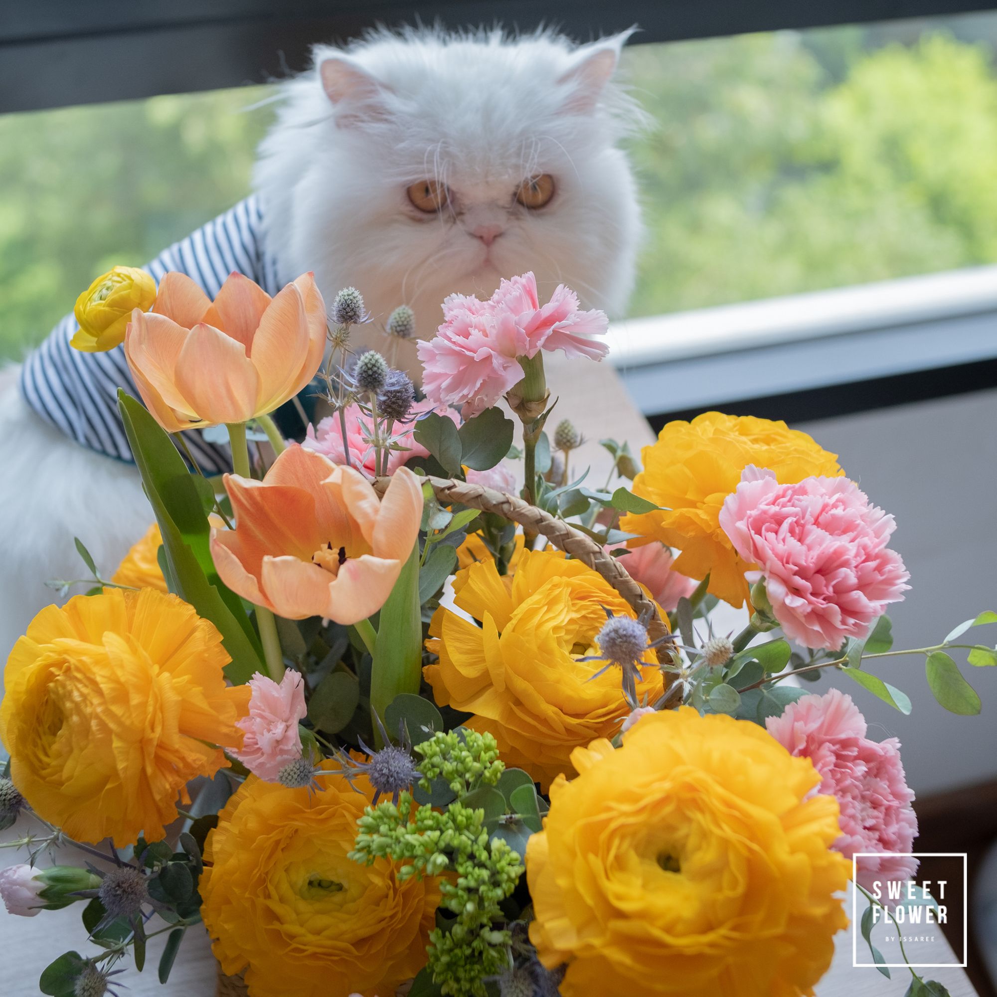 ดอกไม้ที่สีสันสดใส กลีบบางๆที่เรียงตัวเป็นชั้นๆ อายุในแจกัน (vase life) ประมาณ 7 วัน ชื่อสามัญ Turban หรือ Persian Buttercup พันธุ์ที่นิยมนำมาใช้เป็นไม้ตัดดอกคือ asiaticus , la belle ในแง่ของการใช้งาน ตัวดอกมีความบอบบางและไม่ทนอากาศร้อนมากนัก ตัวก้านบางครั้งมีขนาดเล็กทำให้หักง่าย หลังจากที่ผมซื้อมาจากปากคลองจะรีบตัดก้านแล้วนำเข้าตู้เย็นทันที ที่ร้านจะนิยมนำมาจัดแจกันหรือกระเช้า มีแหล่งที่มาจากจีนและเนเธอร์แลนด์ คุณภาพและสีสันสวยงามไม่แพ้กันทั้งสองแหล่ง
