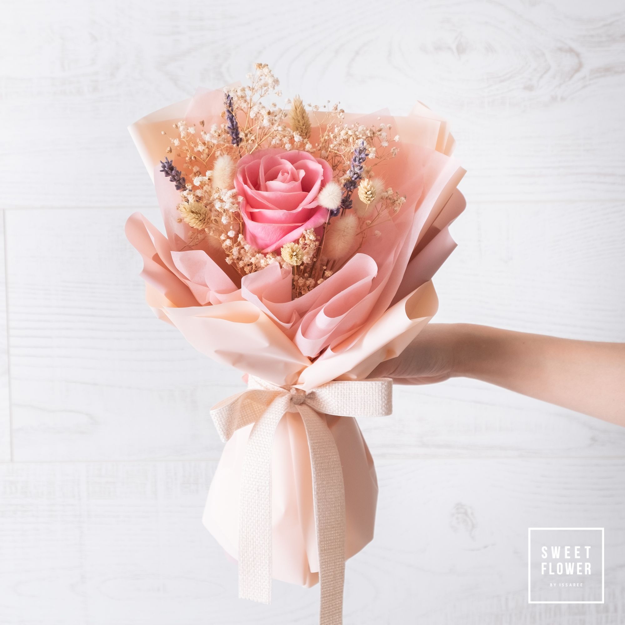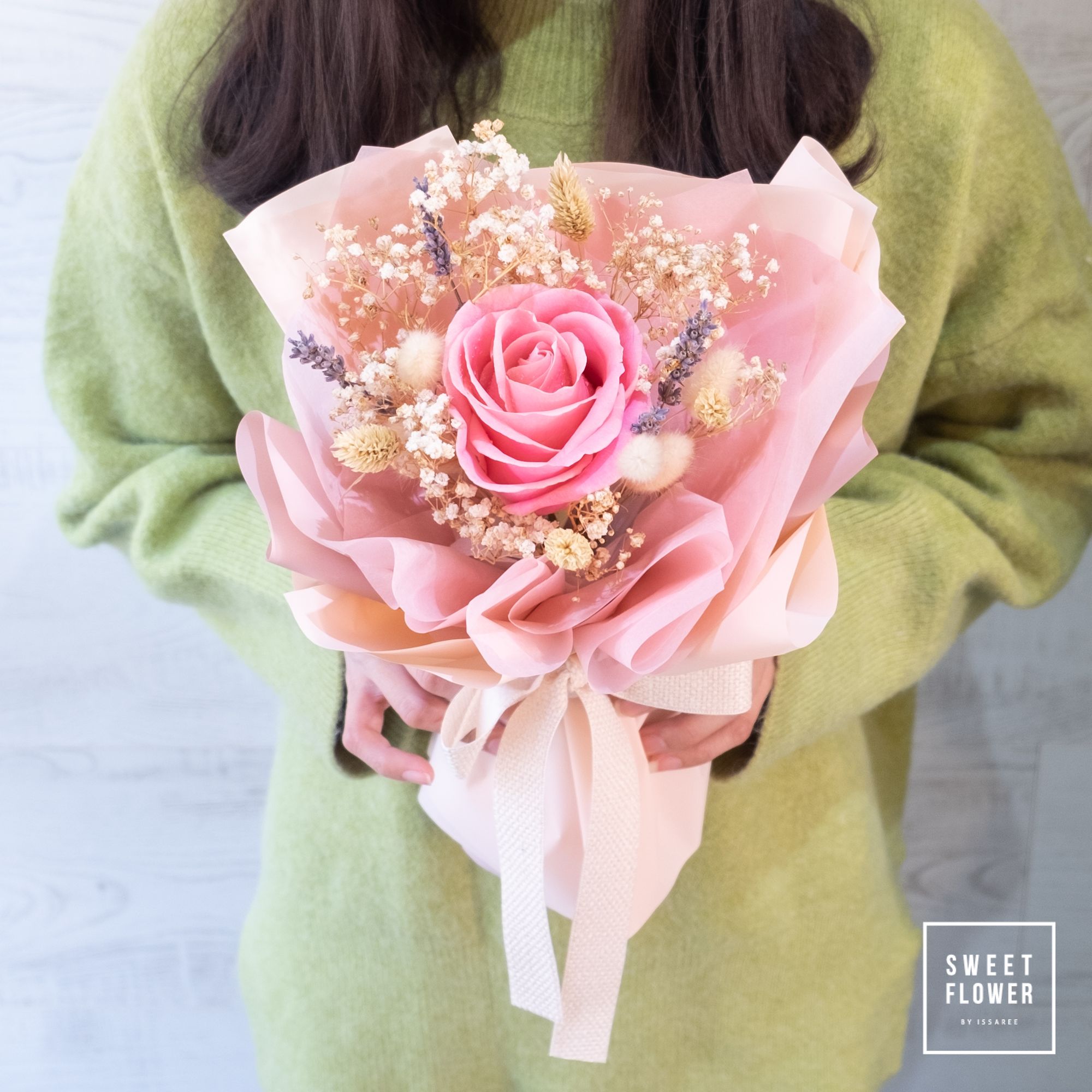 ช่อกุหลาบเอกวาดอร์ดอกเดียว โทนชมพู