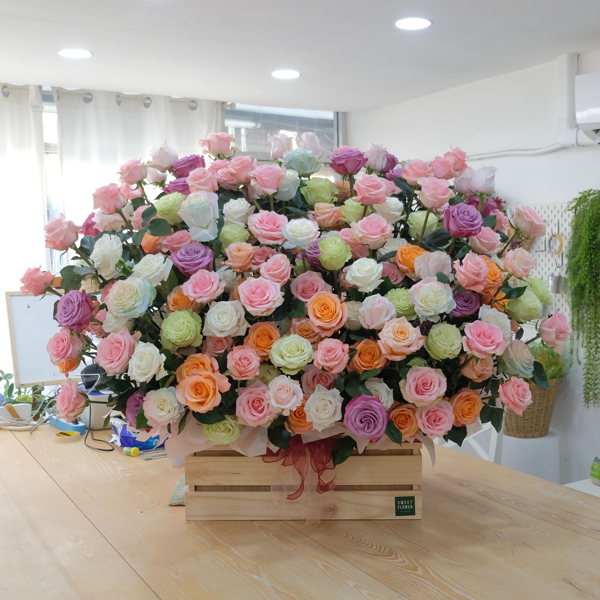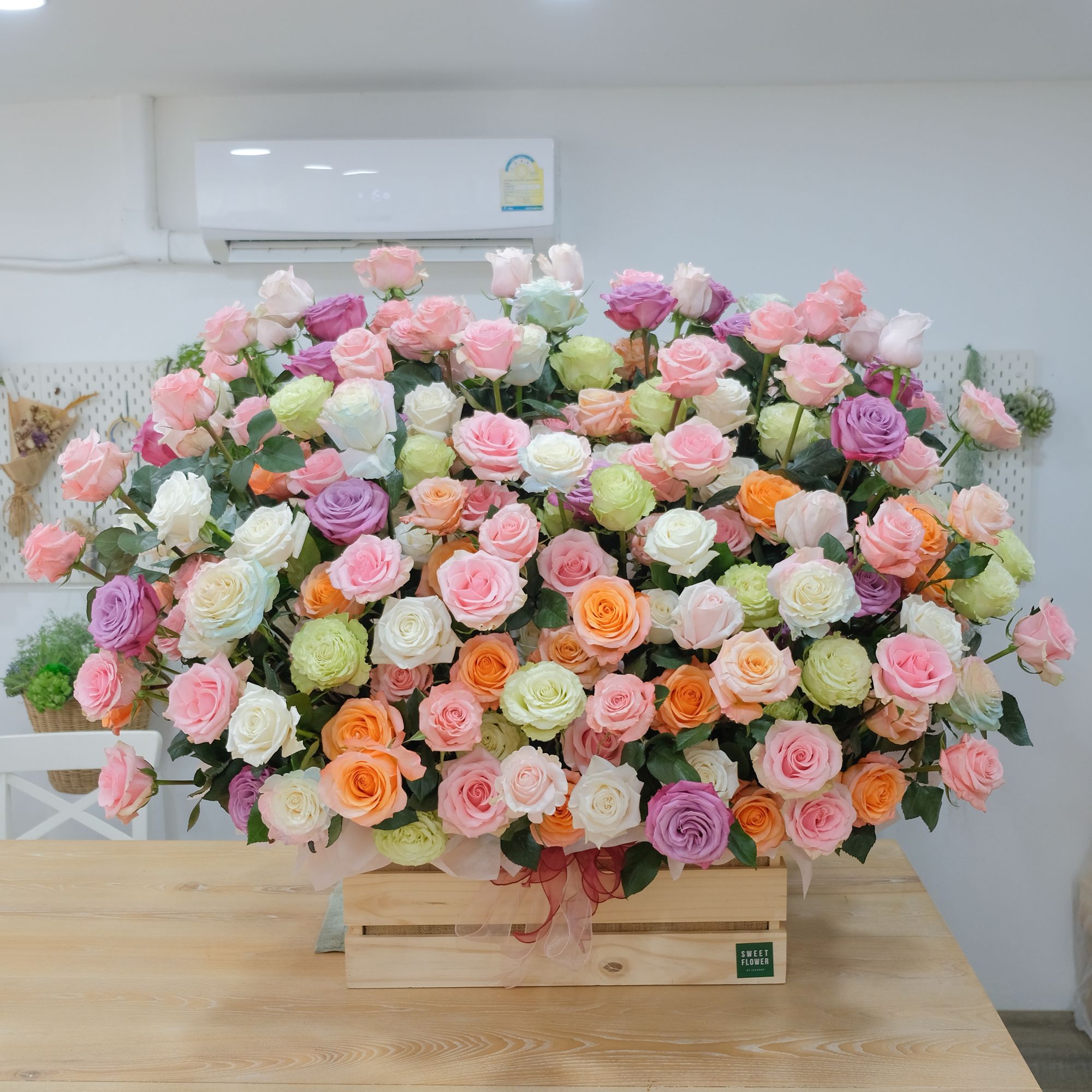 ลูกค้าสั่งซื้อช่วงวันวาเลนไทน์ เป็นของขวัญสุดพิเศษในโอกาสพิเศษ ช่วงวาเลนไทน์ราคากุหลาบจะปรับตัวสูงที่สุดและค่อนข้างหายาก หากไม่จองล่วงหน้ามีโอกาสสูงที่จะไม่ได้ แต่เราก็หามาจนครบเกือบ 189 ดอก ทางร้านเลือกใช้กุหลาบนำเข้าจากเอกวาดอร์ทั้งหมด เพื่อความทนทานและขนาดจะพิเศษกว่าแหล่งที่ปลูกที่อื่น รวมถึงโทนสีของกุหลาบที่มีเอกลักษณ์