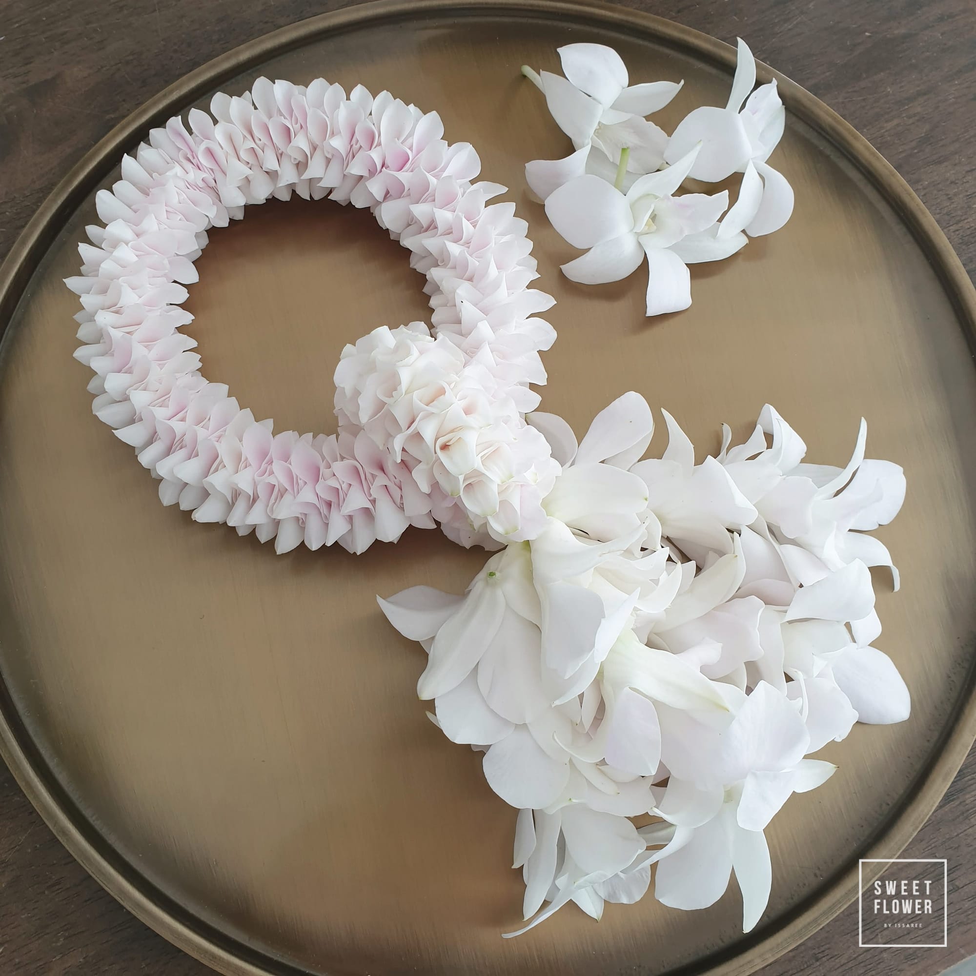 ✨ ฝึกสติผ่านศิลปะการร้อยพวงมาลัยแบบไทยด้วยกลีบกล้วยไม้แท้